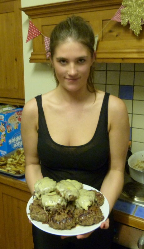 6) At this point, check your chips. They should have started to go golden brown. Keep trying them until you think they’re ready. Your burgers can be left covered in the fridge if the chips still have a while to go.