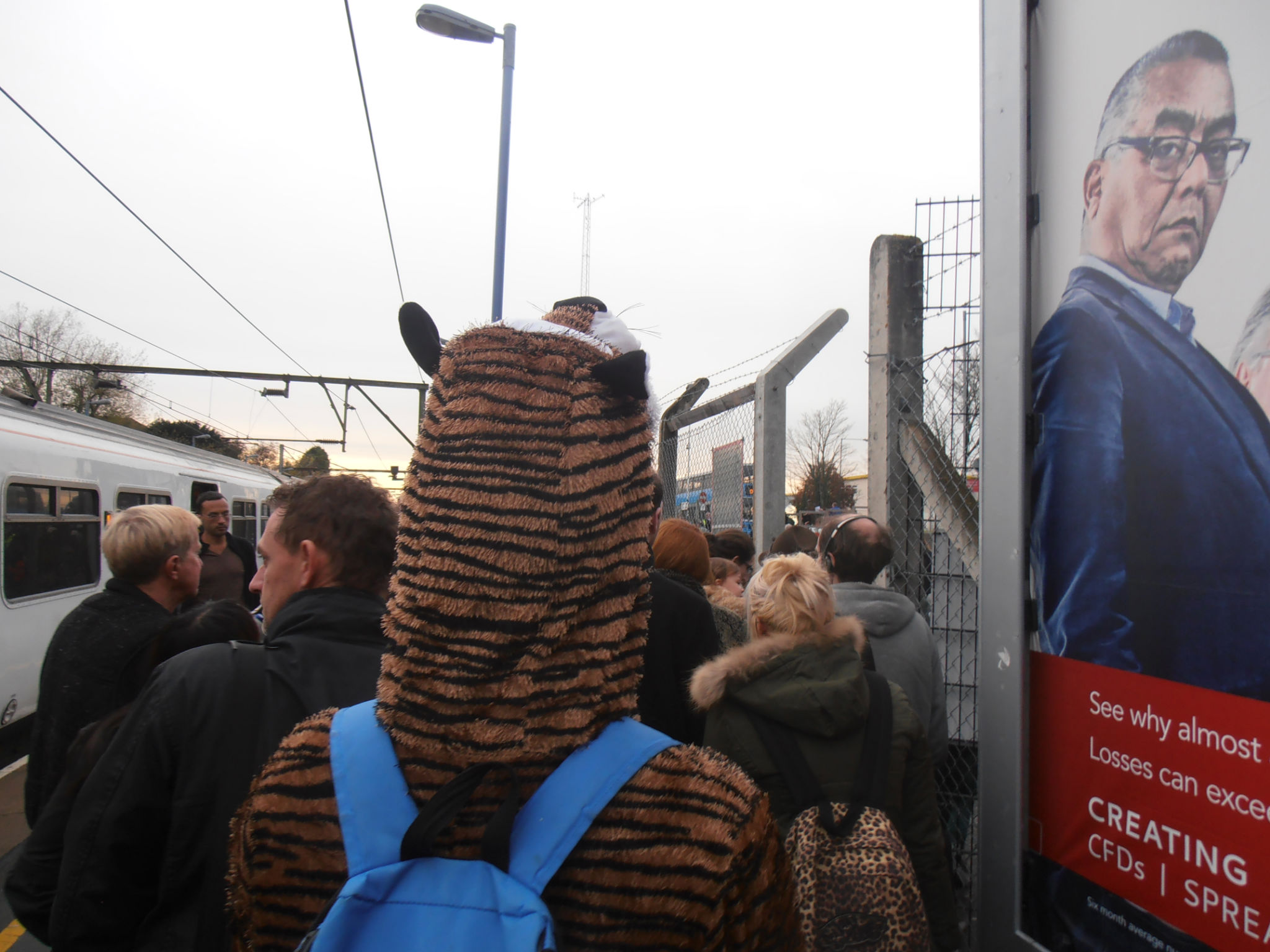 It’s rather hard to blend in with the crowds as a tiger and a gingerbread man. We threw caution to the wind, marched up to the barriers, showed our charity letter saying we were fundraising by doing Jailbreak, and were waved through ending up at Liverpool Street.