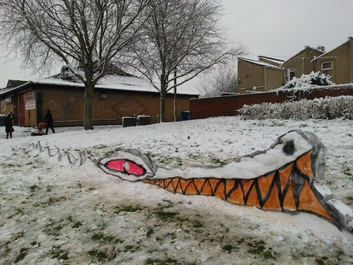 Any budding artists keen to make their own snow street art may have to wait until the next forecasted snowfall on Tuesday. Until then, enjoy this collection of pics from the last few days.