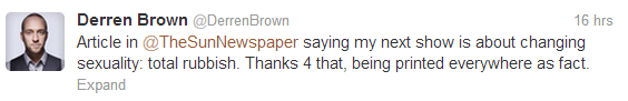 He tweeted: “It’s odd, seeing as in the original GT article I said changing sexuality WOULDN’T work. Still, it was a bit of intrigue over breakfast.”