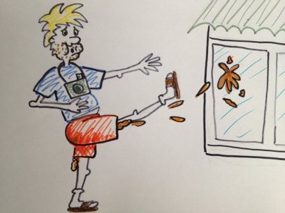 In an attempt to rid himself of the descending mess, Stan kicked his leg out. Unfortunately a friend caught him just as he was spattering faeces onto a shop window.