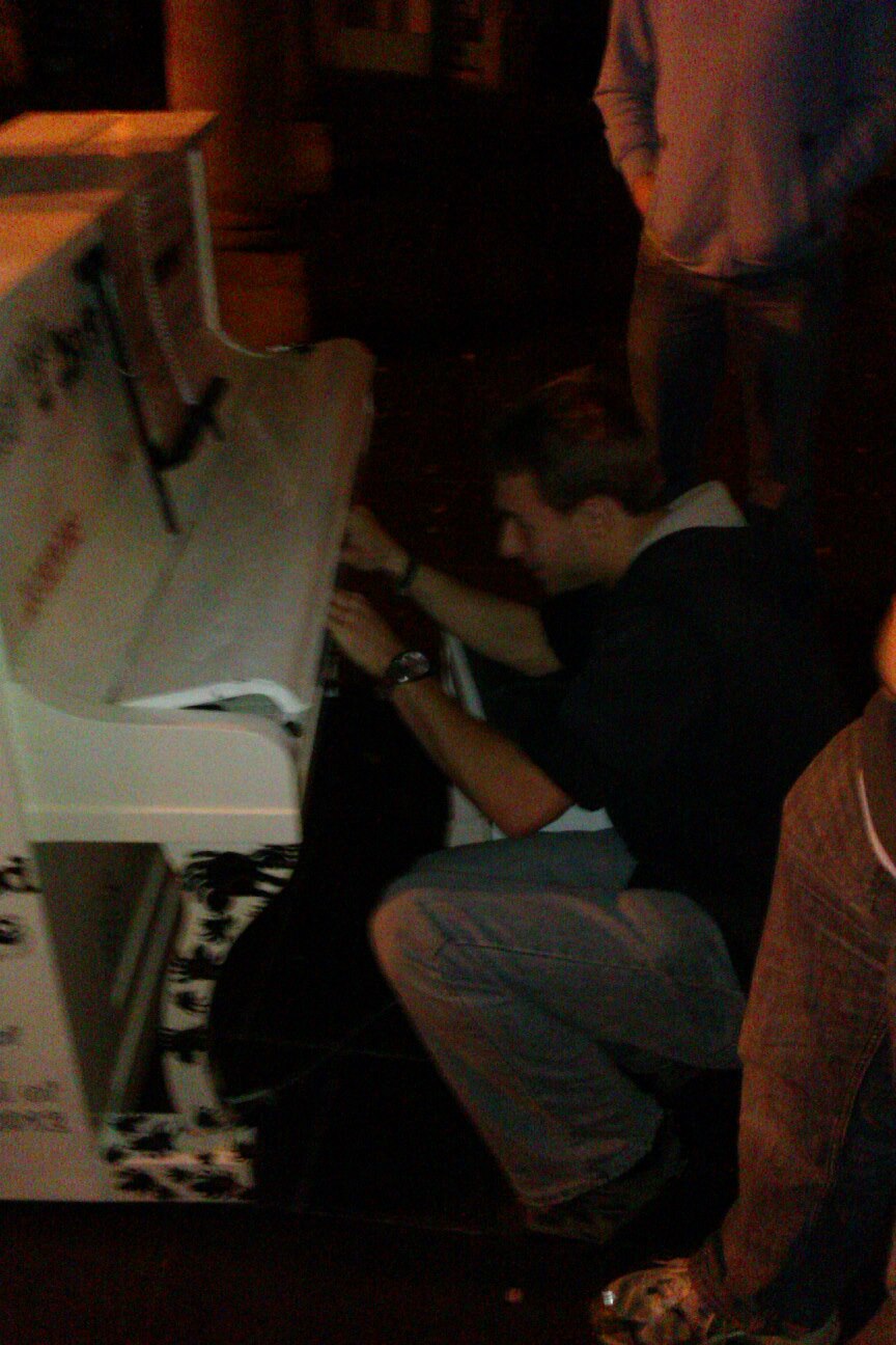 - A student demonstrates how a ‘locked’ piano can still be played.
