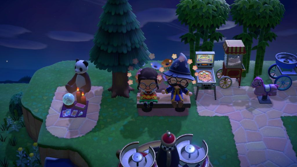 While sitting on the Ferris wheel last year was possibly the most romantic moment of my life (take note, guys and gals!), sitting on a bench near a teacup ride was as close as I could get at my own Maple May Ball. Nintendo, please! let! us! use! furniture! All I want to do is sit in the teacup ride :(( We’ve also got a fortune-telling bear, a swimming pool (not strictly May Ball entertainment, but perhaps a better alternative to drunkenly stumbling into the Cam) and a little pink horse because I thought it was cute.