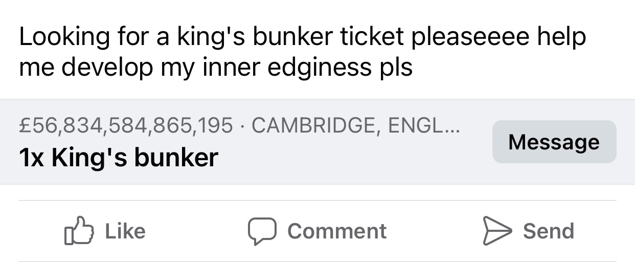 King’s Bunker tickets are always in high demand (Image credits: Facebook @Ticketbridge)