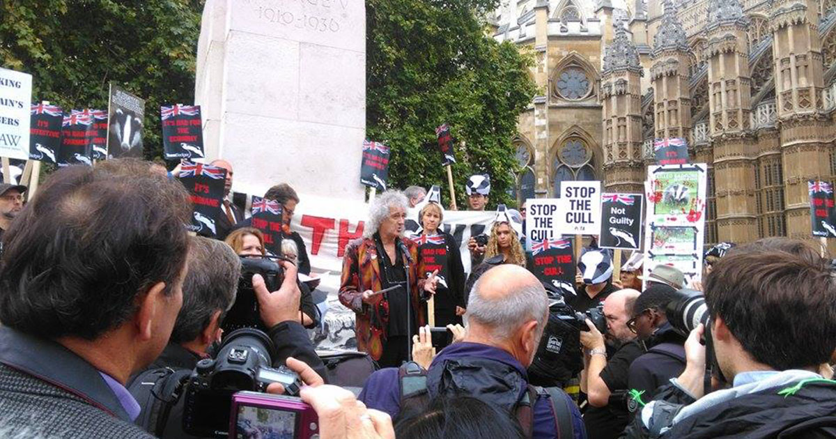 The speeches were led by Queen guitarist Dr. Brian May, who gave a stirring talk against the government’s policy of culling badgers in order to try and prevent the spread of Bovine Tuberculosis.