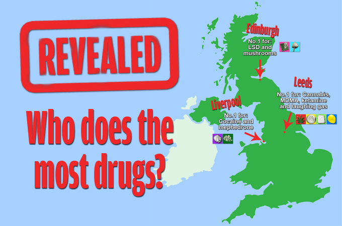 But while Leeds might score highly overall, students in Edinburgh are clearly wiggin’ out on hallucinogens as they snatch top spot for the number of respondents taking LSD and mushrooms.