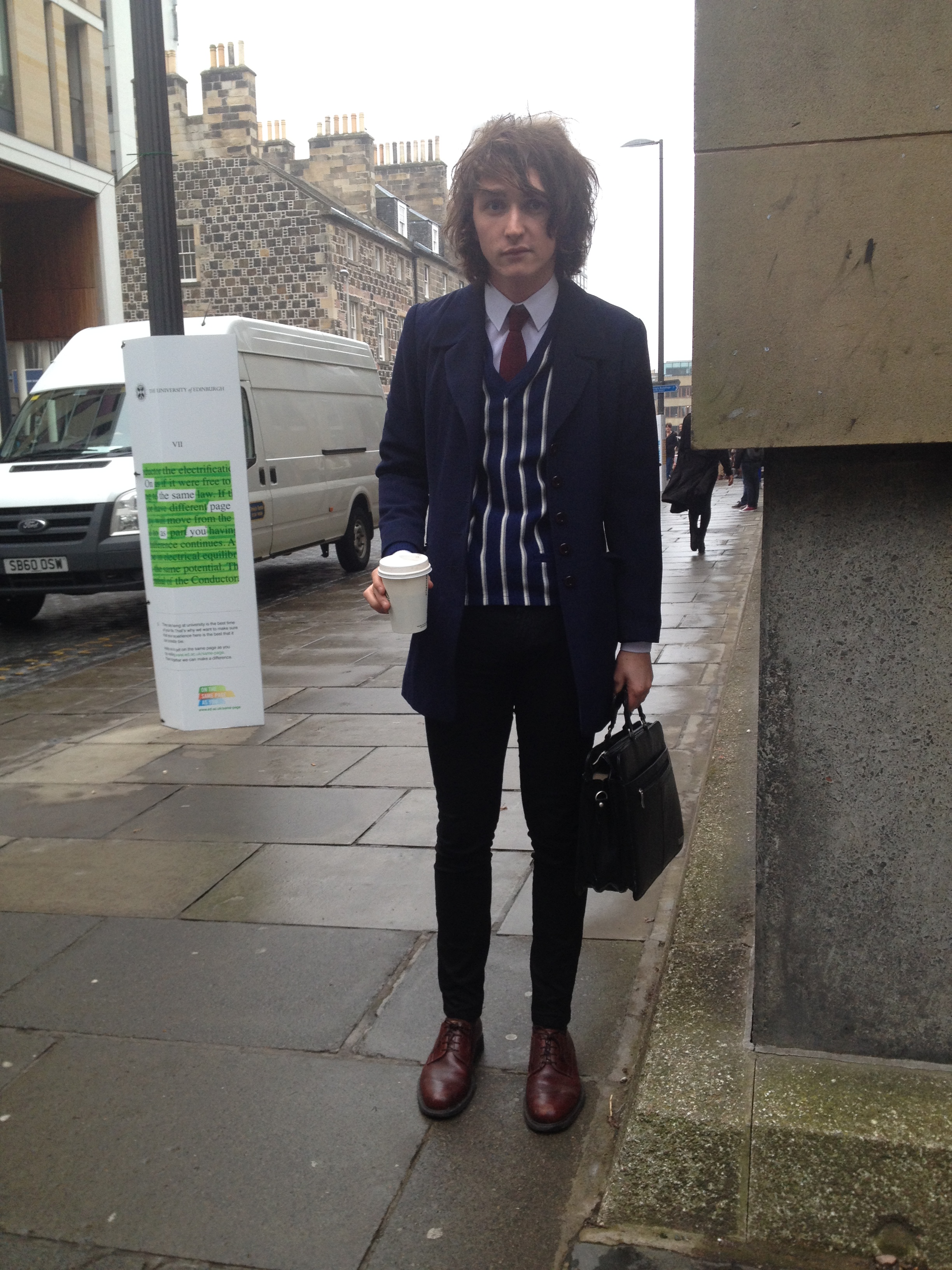 Classes start at 5pm? Lucky you. These girls spotted rocking some colourful knitwear outside the library, perfect for those chilly Edinburgh evenings.