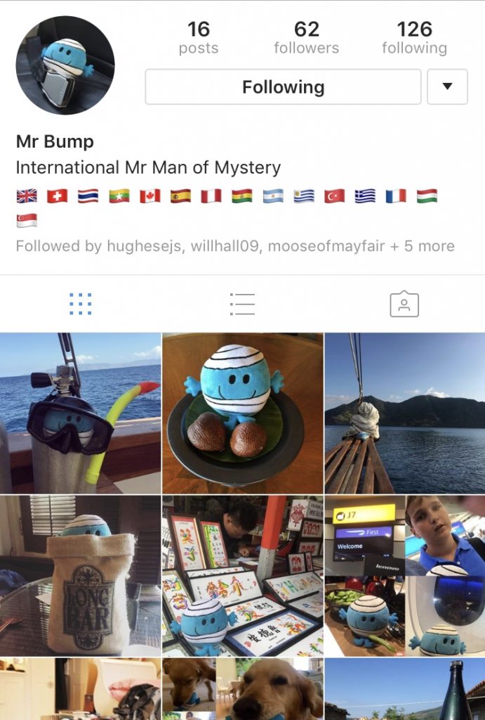 Some students have even extended the campaign to inanimate objects. Rupert, a second year at Durham, has allowed his stuffed toy, Mr Bump, to join the insta-travel community.