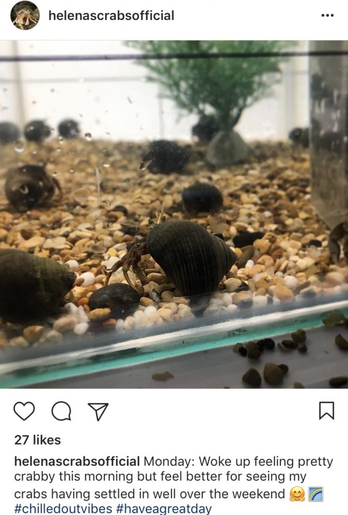 After studying crabs for her dissertation, fourth year St Andrews student Helena felt it only right to allow her pals access to social media.