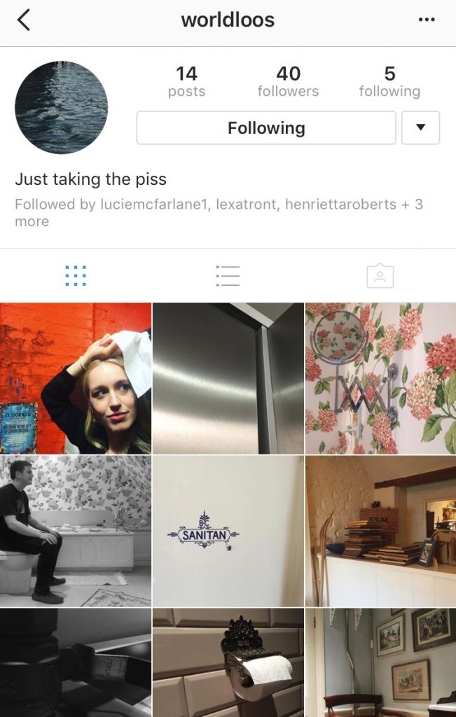 Don’t worry you can still get involved even if you don’t have a pet! Lexie, a first year History of Art student, enjoys documenting her favourite toilets. Brilliant.