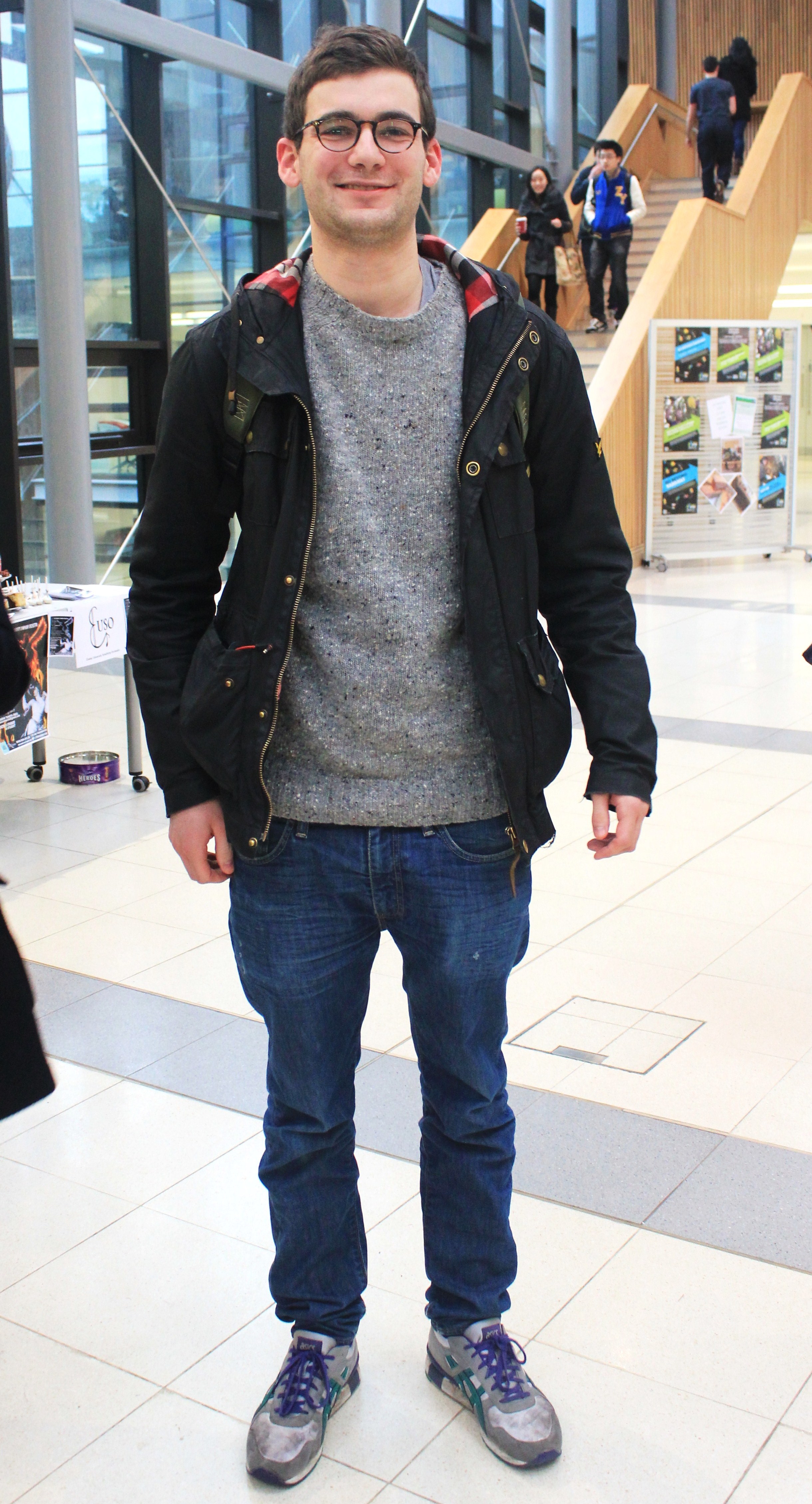 Thomas James (TJ), a 2nd year History student, shops at Urban Outfitters and diverseclothing.com. He also claims to knit his own clothes and describes his style as ‘comfortable, stylish and promiscuous’.