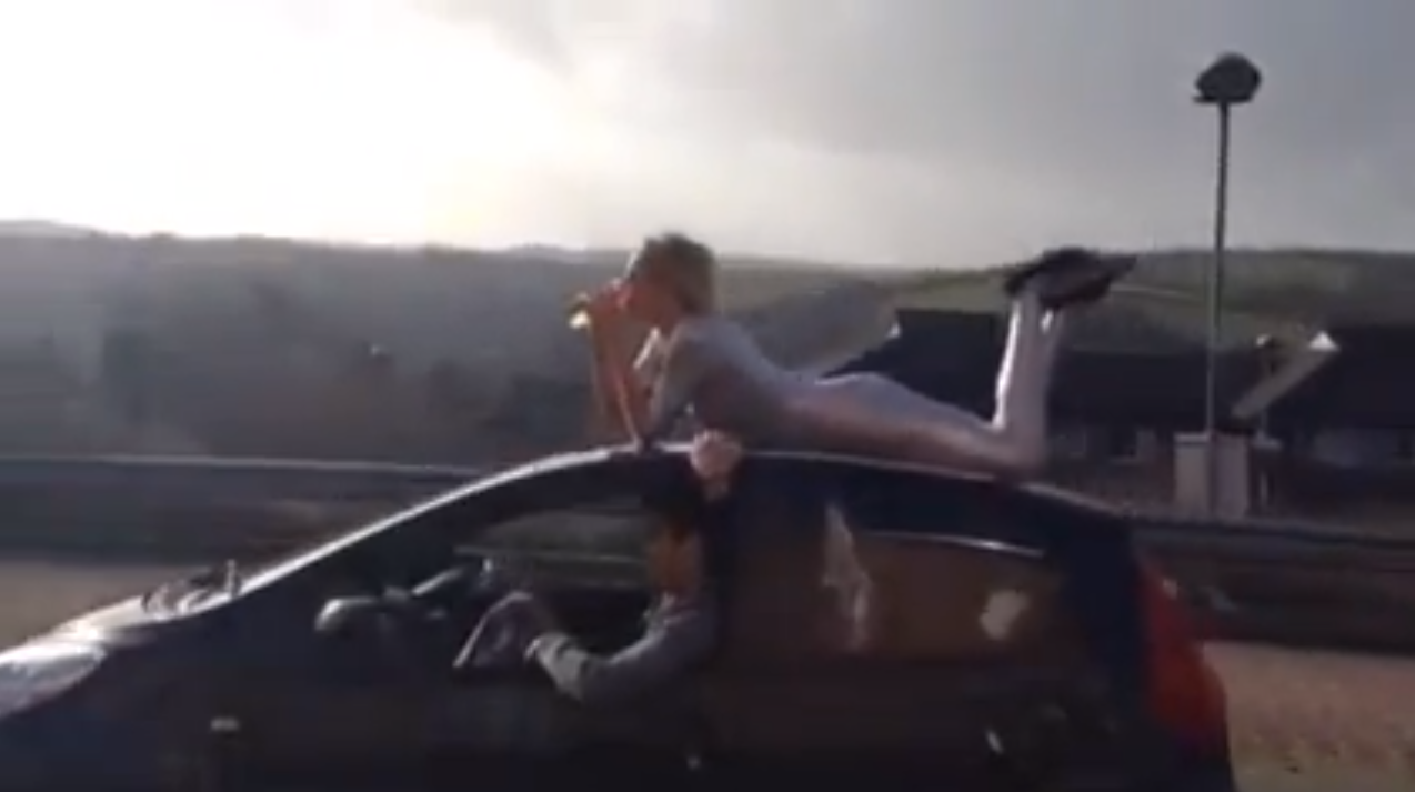 See footage of an Exeter fresher bolting on top of a moving car for her necknominate