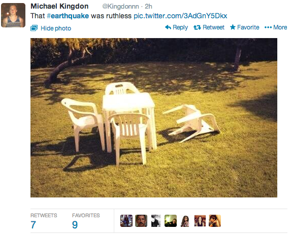 Following the earthquake, people took to Twitter to report their experiences: