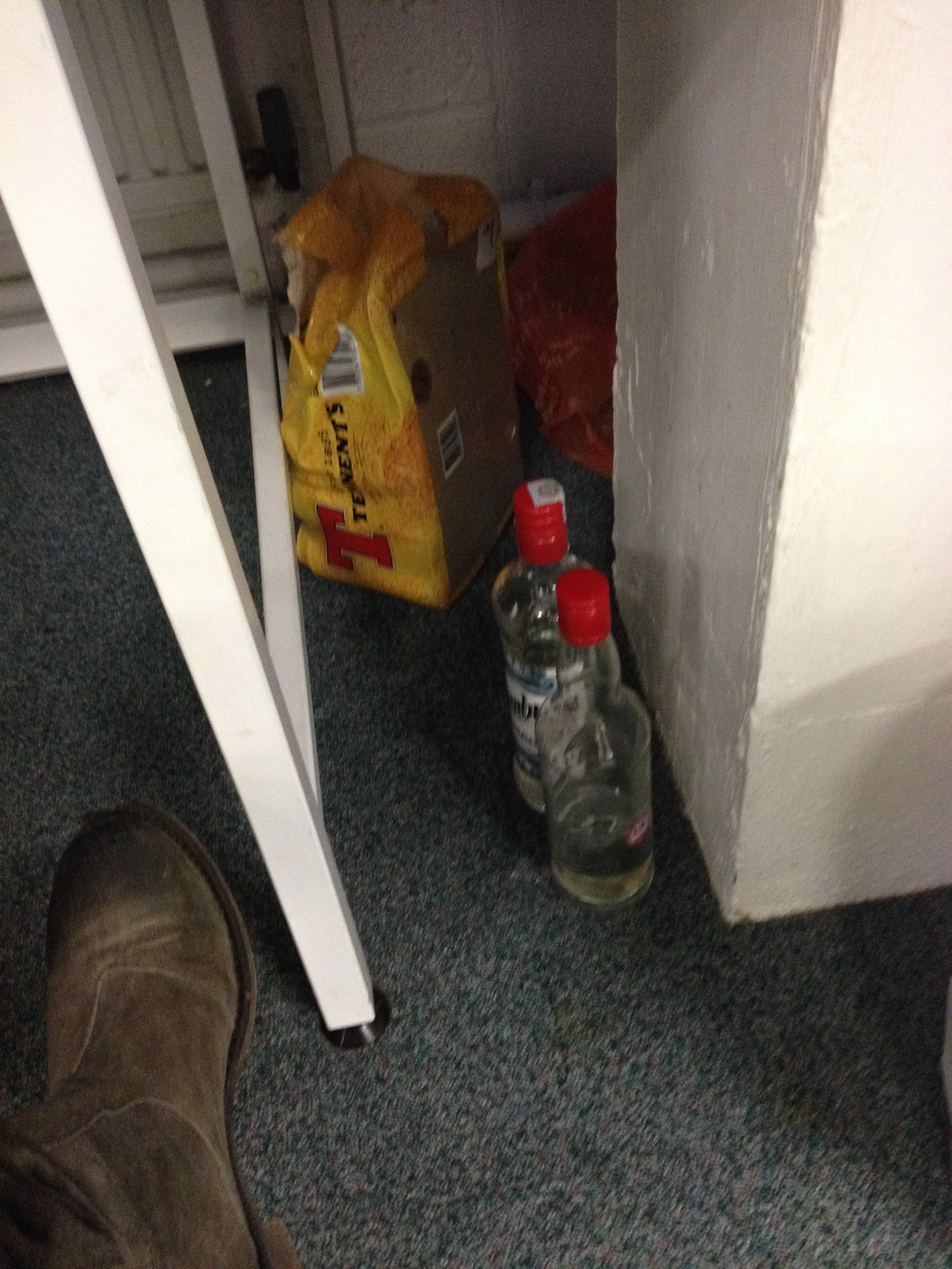Students in a Level One Archaeology tutorial found bottles of vodka and a half empty case of Tennents under their desks in the IT Lab.