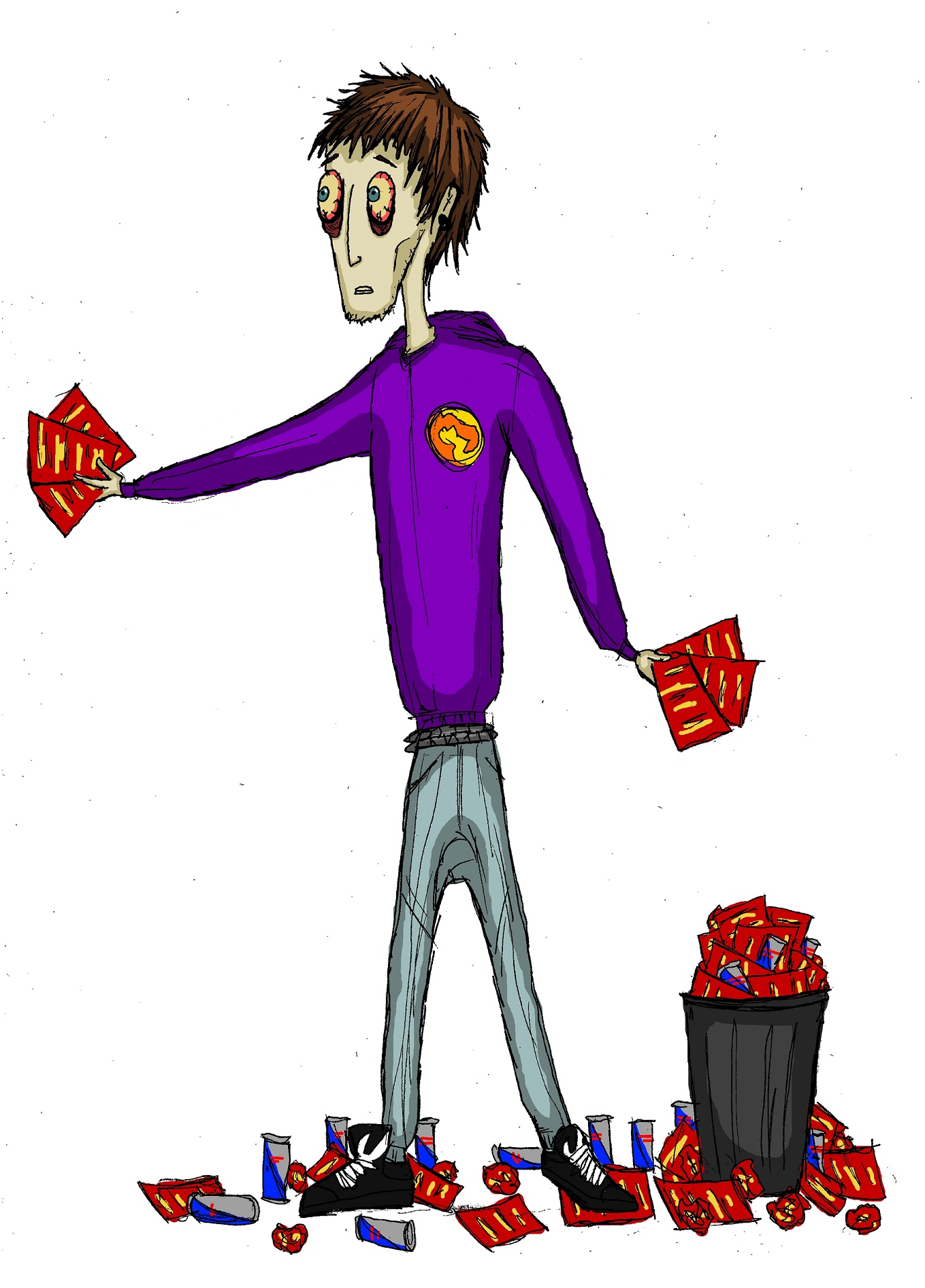 From the moment they send in their application email, it’s all go for the Promo Zombie. The flyers arrive, the statuses start and the door-knocking begins. One week into infection, expect the creature’s skin to lose all former colour, the eyes to redden and the hair and skin to gain swathes of grease. This is attributed most often to a diet of energy drinks and foul kebab-shop treats that keep them going through the cold morning hours of handing flyers out to people too wasted to remember what their own name is, let alone read.