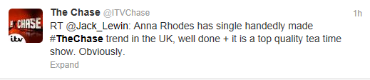 A 2nd year’s performance on ITV’s The Chase went down well with the Twitterati