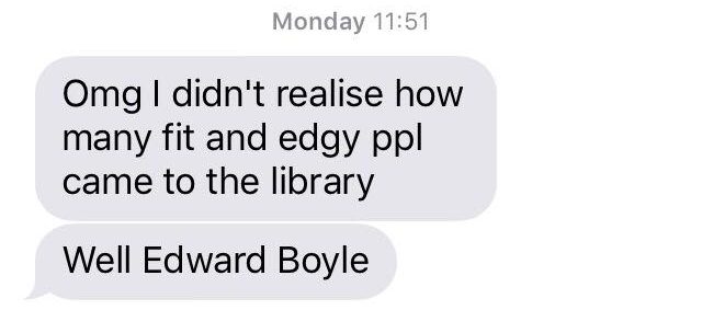 Despite the painfully slow water dispensers, bookless shelves, claustrophobic elevators and those fucking horrendous revolving doors that have the capacity to amputate you upon entering, Edward Boyle is an essential place for those looking to kill time between lectures and seminars.