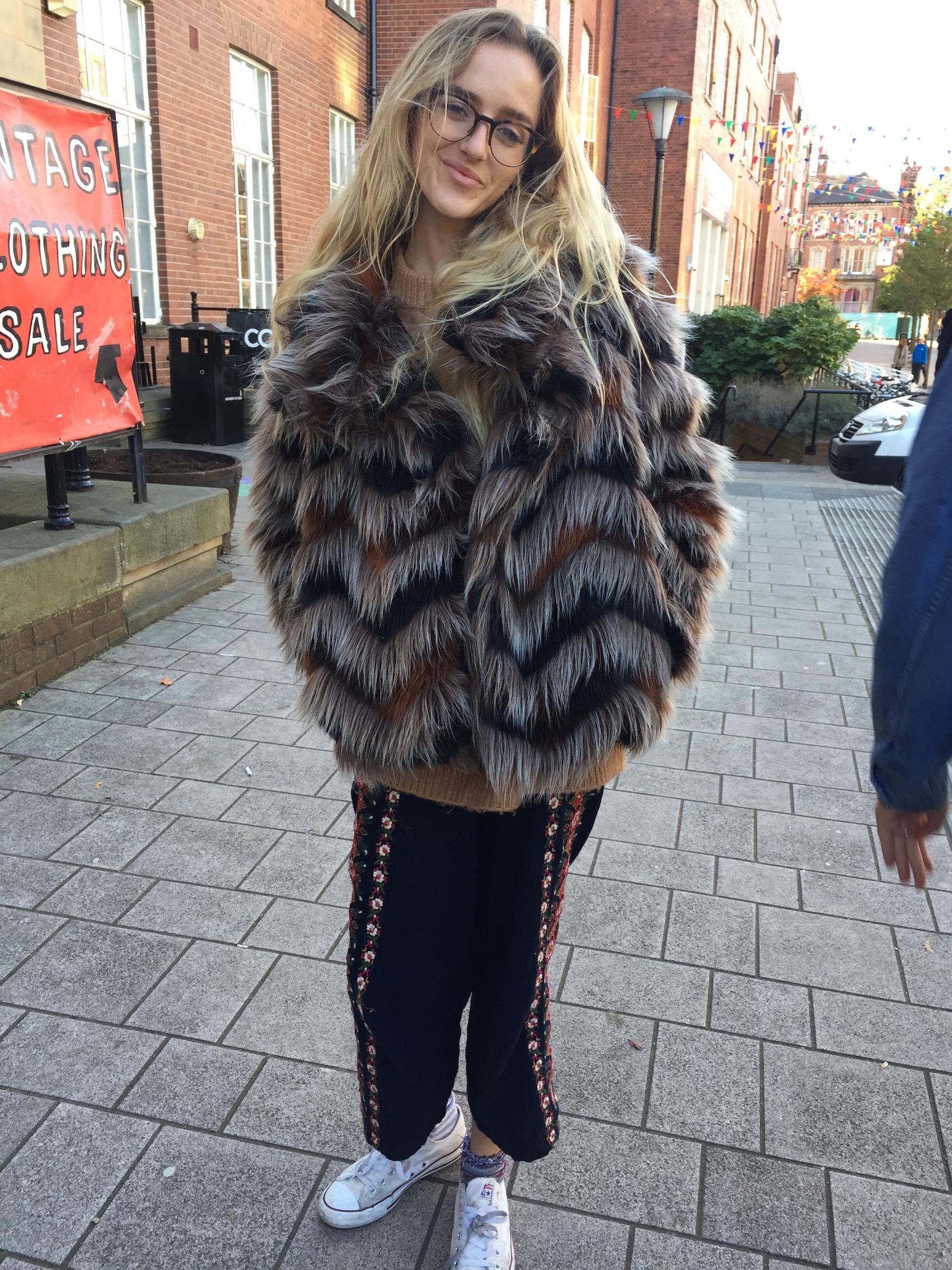 That fur coat not only looks great, looks warm, but it also only cost her £4. Yes we're annoyed we didn't spot that charity shop spot too.