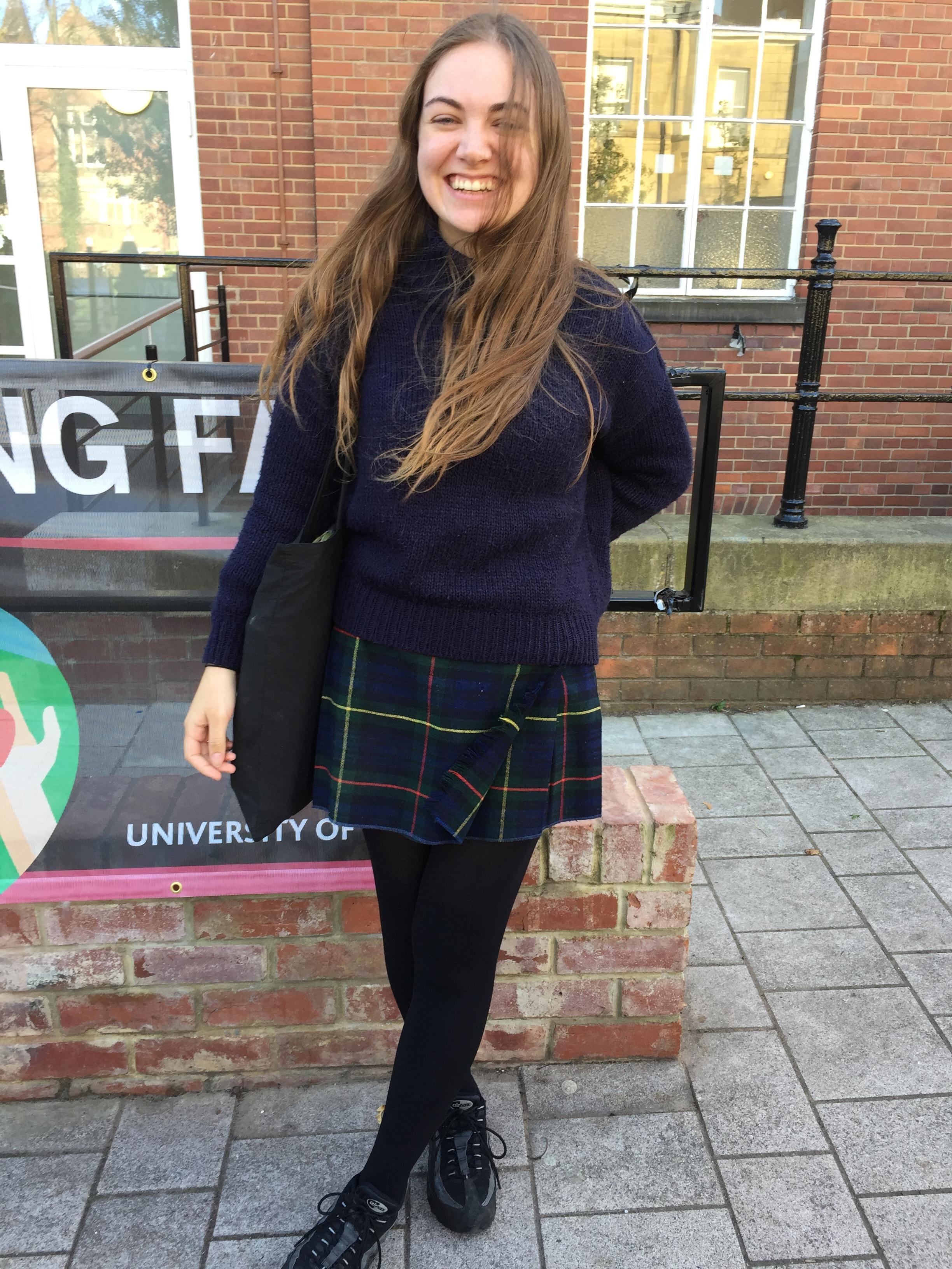 Making the kilt cool. Lilly has made a traditional tartan school skirt look sleek and stylish.
