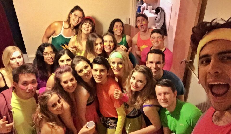 With it being their most famous social of the year, the “Tight and Bright” Wednesday night speciality, the living room suddenly looked like a year 8 disco had spewed on it. And it was too early in the night for spewing yet. Everyone looked great for about 10 seconds, before I was blinded by the luminosity of everyone’s outfits, like looking at the sun for too long.