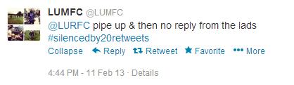 LUMFC gave as good as they got, before completely silencing LURFC with their 19 retweets.