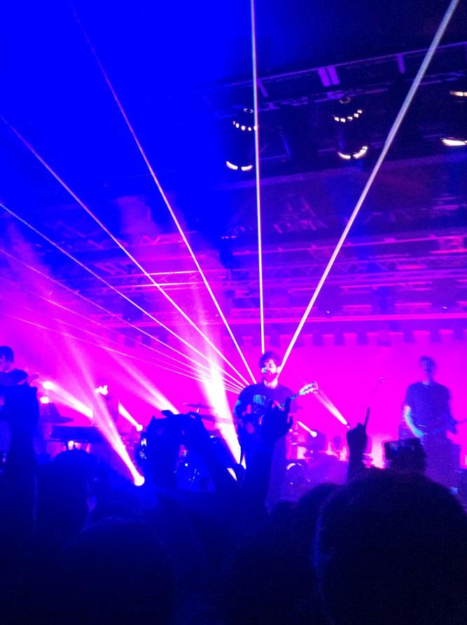 The gig gets off to a slightly slow start, the band appearing on stage one at a time over an extended version of the instrumental ‘Prelude’ from their new album, before breaking into the mid-tempo groove of ‘Miami’ – one of only 3 tracks from Total Life Forever. For a time the audience seem like a crowd constantly on the edge of something, with sporadic groups of jumpers never really developing into anything resembling a mosh.