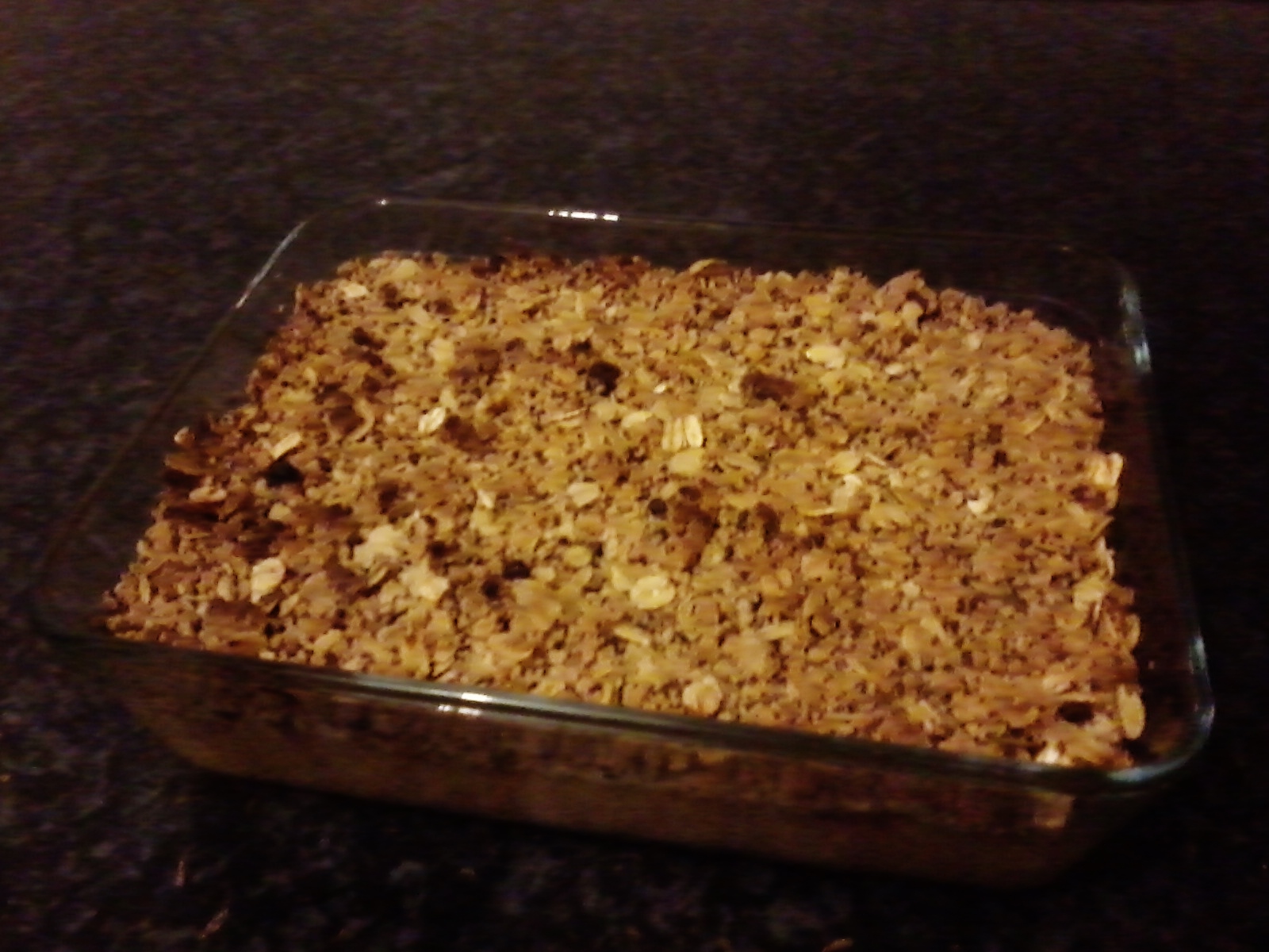 It’s November in Liverpool, and that means freezing rain, wind and ice. What could be better than cooking a tasty crumble to cheer you up? This warming, comforting pudding will serve four to five. Serve with cream, ice cream or custard, naturally. All prices are taken from Asda.