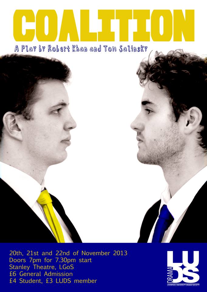 Coalition begins tonight at the Stanley Theatre. Tickets are £4 for students and £3 for LUDS members. More information can be found here