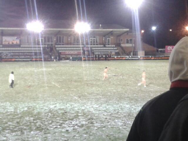 The streakers managed to elude authorities for an astoundingly long period of time, and even after the game the pair were spotted entertaining the exiting crowds with their nude antics. In such freezing conditions, it remains to be seen whether the duo sustained any lasting damage to their genitals.