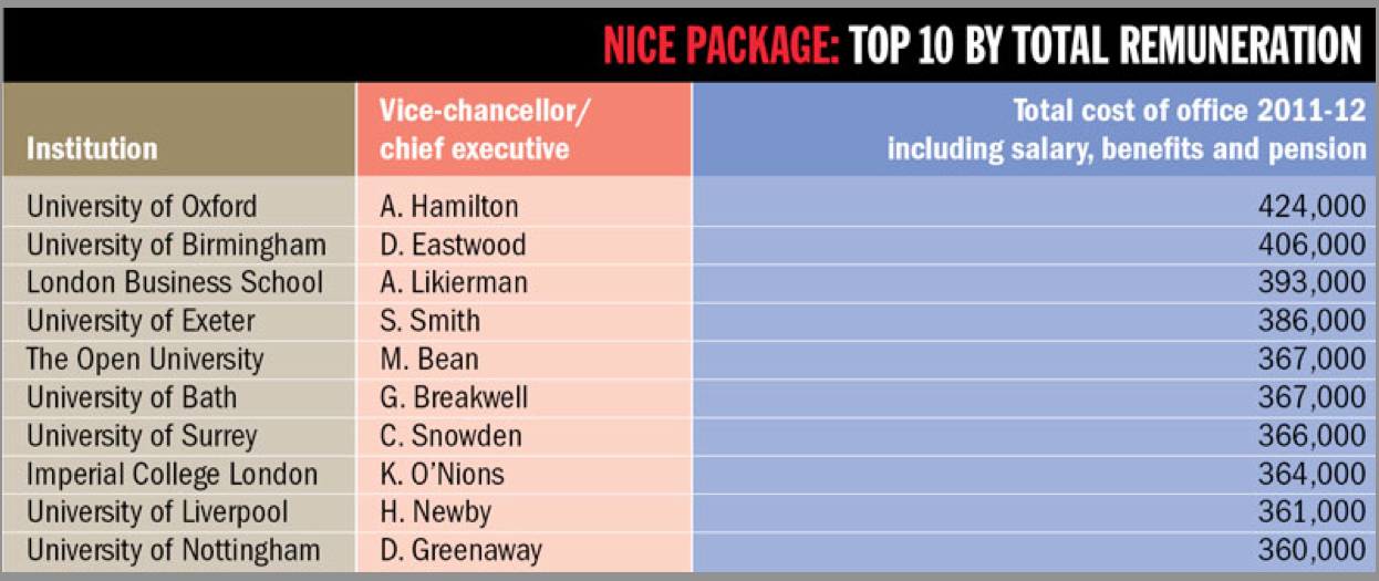The highest paid prof is Oxford’s Andrew Hamilton, whose package last year was worth £424,000. This is almost three times the Prime Minister’s salary of £142,500.