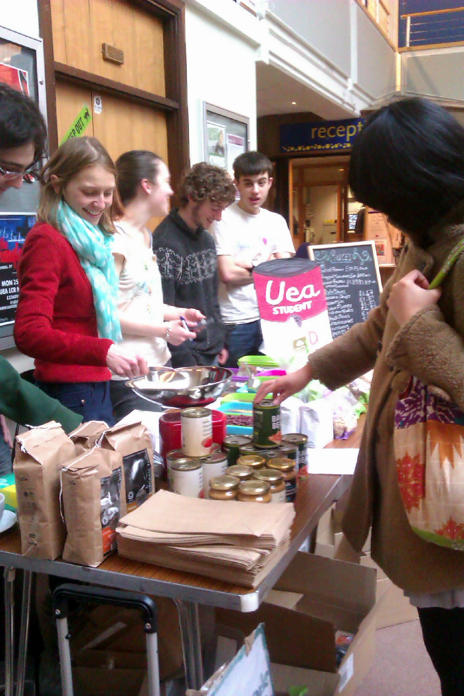 UEA People and Planet, who you may have seen washing the windows of the campus Natwest branch in a quirky green protest last semester, will repeat the dry food sale every Wednesday.