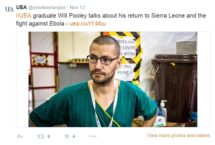 Pooley caught the virus in August while in a government hospital in Kenema, where the initial outbreak of Ebola in Sierra Leona took place. He was airlifted back to the UK on 25 August where he was treated in north London by several experts.