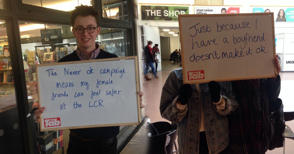 So, we took to the Hive to find out what the ‘Never OK’ campaign means to the students of UEA.