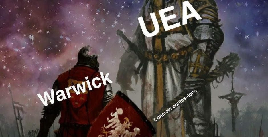 In true UEA fashion, there was plenty of confessions directed at Warwick coming through.