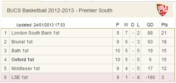 The final score was Oxford 76-84 London South Bank, leaving the Blues in 4th place in the league.