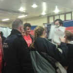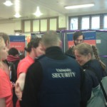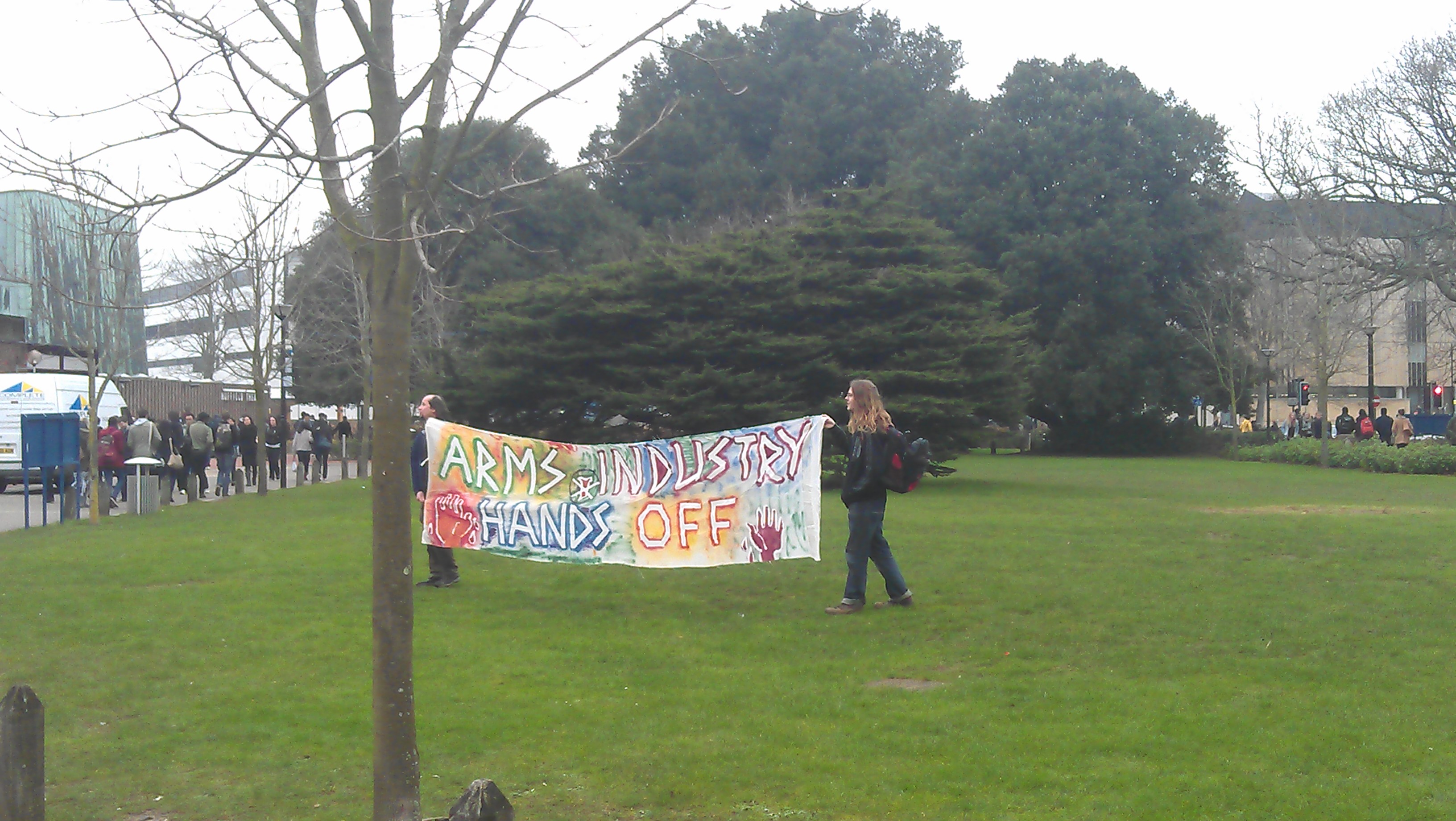 The protesters circulated the fair, held in Garden Court on Tuesday 12th of February, and handed out spoof BAe Systems recruitment flyers and other material.