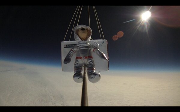 The balloon took its spaceman, Ted (a small, appropriately dressed teddy bear) on the adventure with two cameras and a video recorder attached. The camera’s successfully captured images of almost-space and cloud patterns whilst the video recorded Ted floating above the clouds.