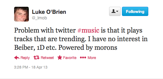 What do you make of #music? Useful resource for finding new music, or annoying inconvenience? Is it a new app or just a rip off of Spotify or other music sharing apps?
