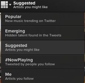 Essentially, Twitter has done all the leg work for you – it provides you with lists of the most popular tracks trending, as well as suggestions for who to listen to and who your followers are listening to. Much like Spotify’s link to Facebook, what you’re listening to can be tweeted so your followers can see.