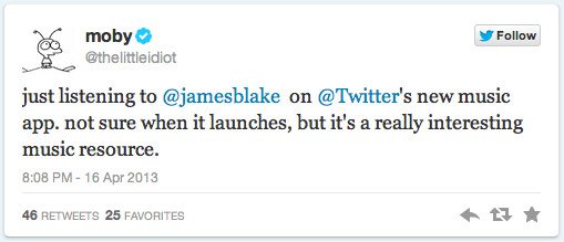Run out of good songs to listen to? Wondering who the new up and coming artists are for 2013? Today, Twitter has released a new music app that gives you recommendations for songs based on who you follow, and what is trending across the world.