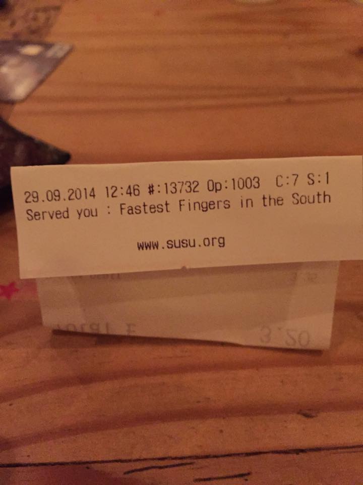 THE FASTEST FINGERS IN THE SOUTH is now working at the SUSU shop. It is not clear whether the individual is referring to their spectacular typing skills, or something else entirely.