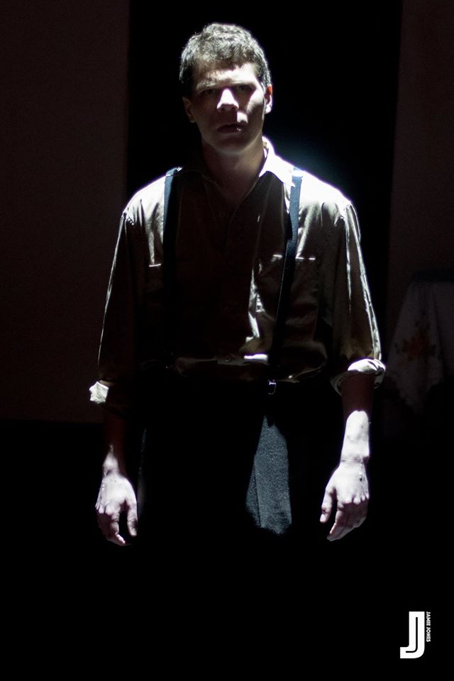 The play tells the story of Eddie Carbone (Gareth Owen), a longshoreman living in Brooklyn with his wife Beatrice (Elidh Mack) and her niece Catherine (Caitlin Morris). Eddie’s overprotectiveness of Catherine is apparent from the offset. However, as the plot progresses, it becomes clear that rather than an innocent, fatherly and protective affection, Eddie harbours an unnatural and obsessive fixation with Catherine. The play recounts the way in which this inner disposition affects, alienates and ruins the lives of all those around him, and ultimately destroys him himself.