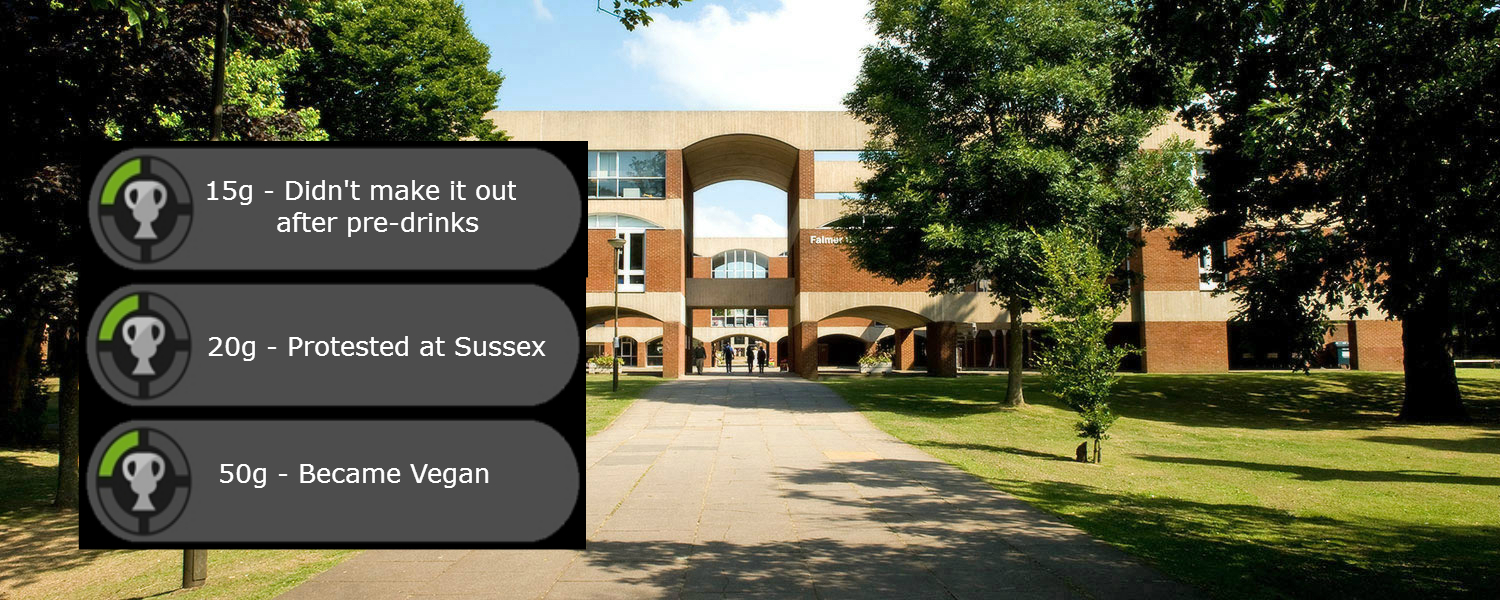 Did you know there was a Sussex achievement list that rewards the weird and wonderful things you have done during your time in Sussex? To play along, simply add up the Gamerscore (20g = 20 Gamerscore) if you have successfully completed certain tasks on the list and post what number you have in the comments to compare with others. Happy achievement hunting.