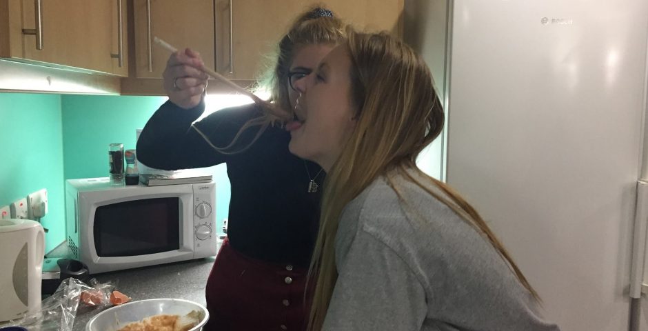 We hit a bump in the road when it came to putting the mixture into cake tins. The bump was that we had no cake tins. Eventually after rummaging through my flatmates cupboards whilst literally crying with laughter, we found a cupcake tray and decided that would have to do.
