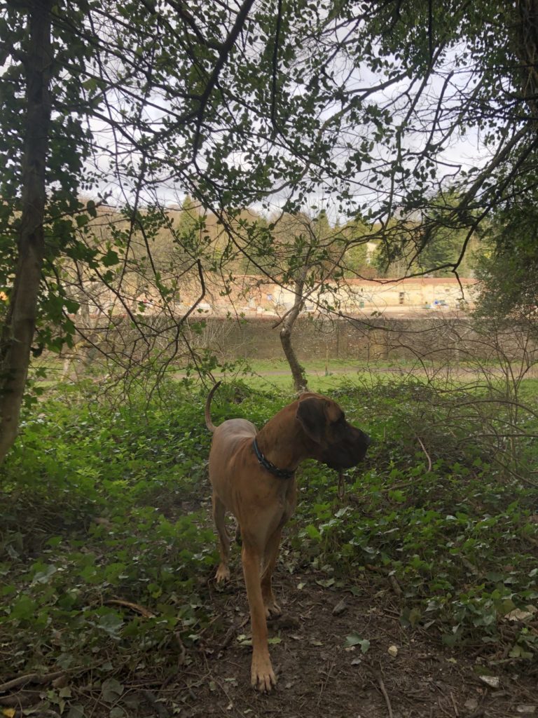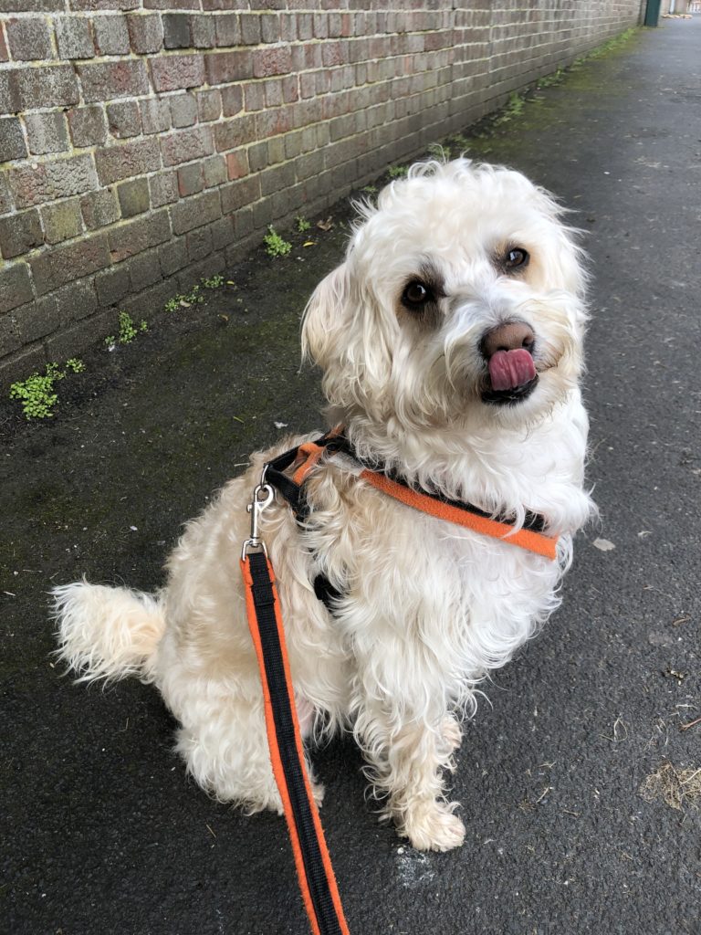 An excitable baby who will often trip you up while you walk which really adds a bit of excitement to the experience. Rhubarb’s legs are also different colours because she is not like other dogs – a quirky queen.