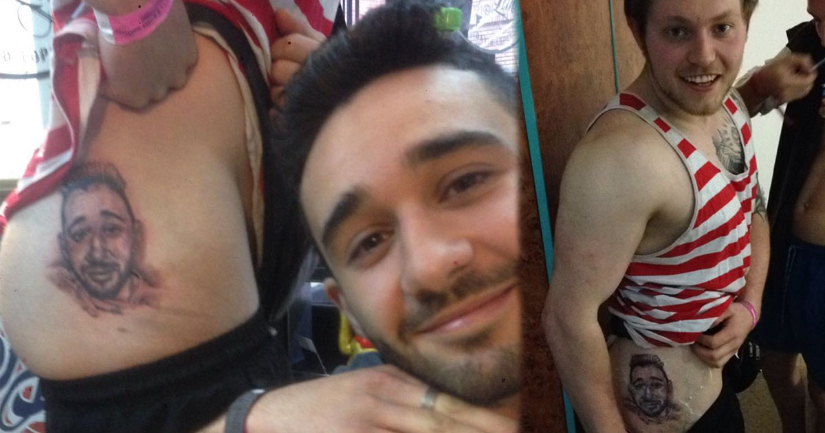 After yet another boat party in Lloret De Mar on this year’s tour, Wez decided it was time to take the plunge and get the long awaited tattoo blazoned onto his bum.