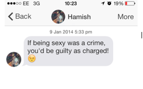 You input your gender, your sexuality, your location/how far you are willing to travel to get laid and how old/young you like your prey to be. Then Tinder’s complex algorithms work their magic and present a plethora of willing singles in your area. Profiles contain a little “About me” section, a choice of photos and shared interests or friends. Then, dependent on how much said singleton has wowed you in 4 pictures and about 12 words, you either swipe left (NOPE) or right (LIKE). If a mutual right-swipe occurs, you’ve got a match!