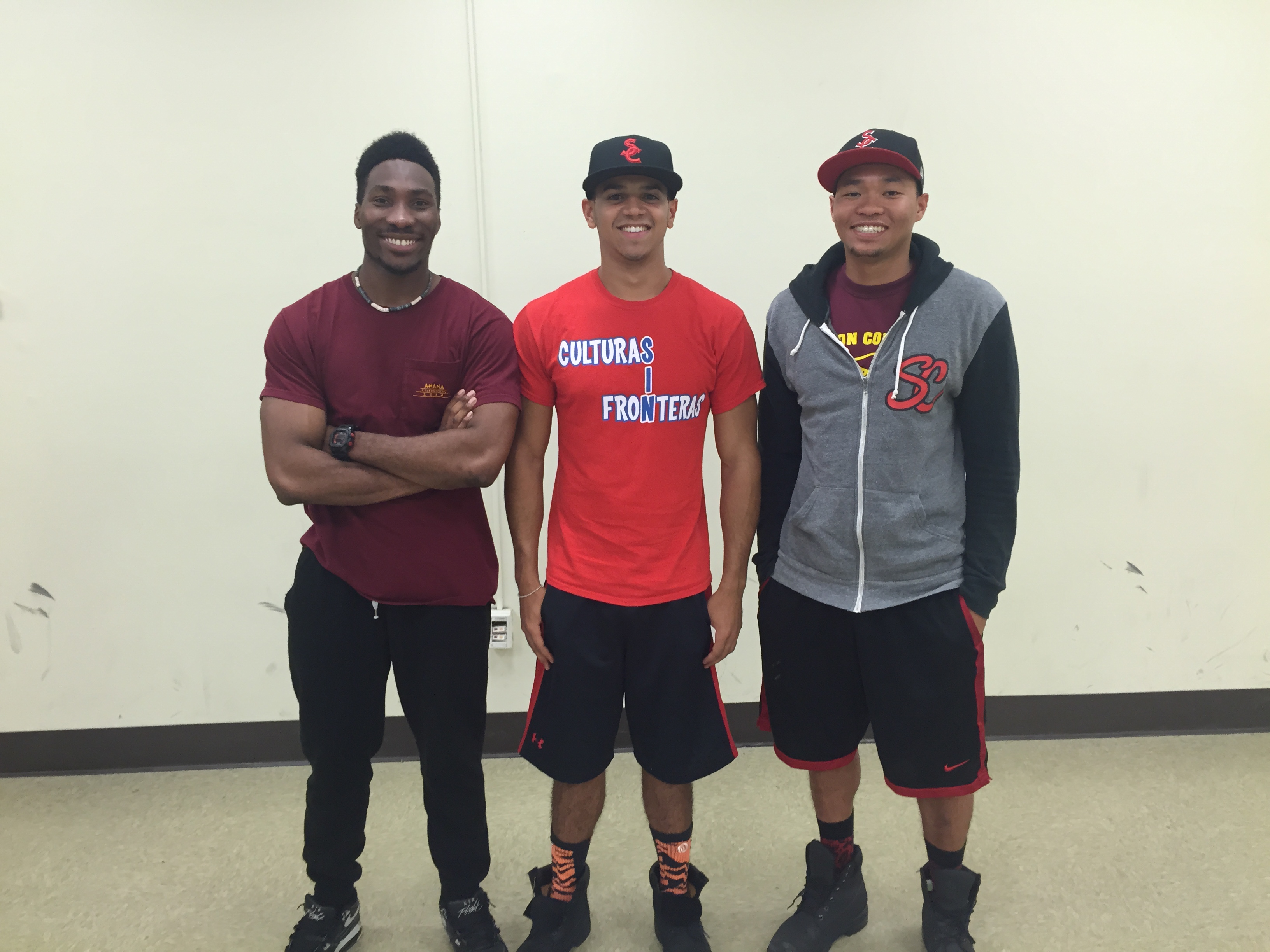 From left to right: Osamase, known as “Cocoe Maestro,” is an English major and African Studies minor. Jeremy, “Latino Cappuccino,” is a Psych major with a Marketing minor. Owie, also known as “Scream S’more,” is a Communications major and African studies minor