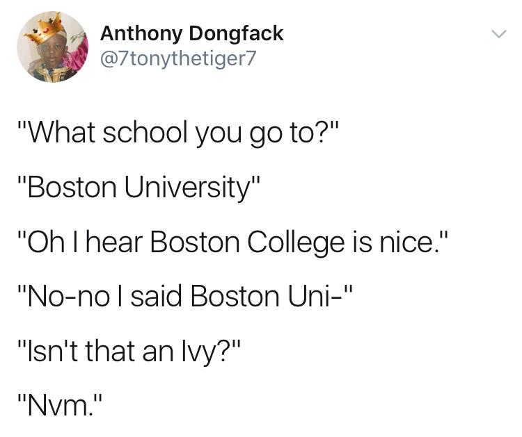 This tweet, that depicts every student when they see the price of BU constantly increasing: