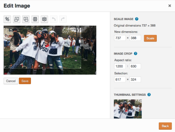 Make sure that it’s set to 1200 x 630. If it’s still not pulling properly you may need to refresh the link by clicking on the time of the post and then using the arrow in the right corner and choosing “Refresh share attachment.”